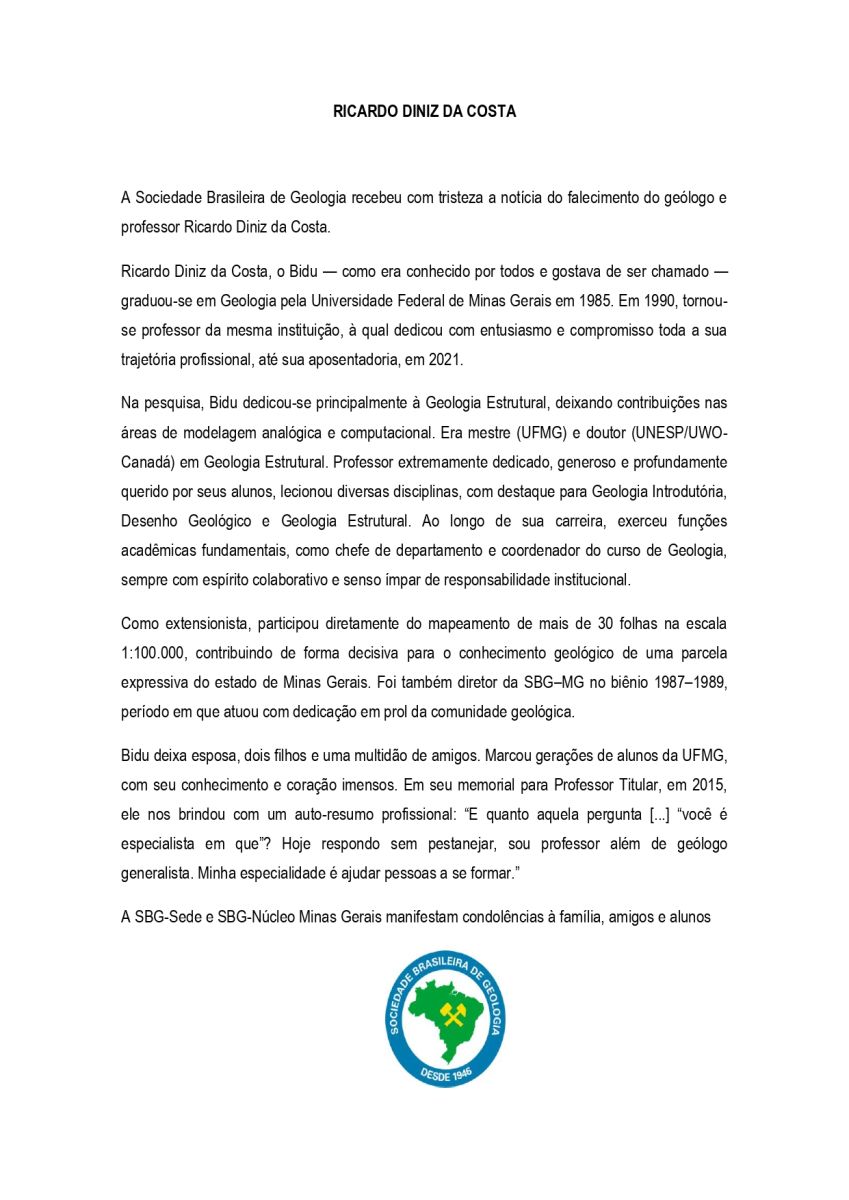 Nota de Falecimento! RICARDO DINIZ DA COSTA